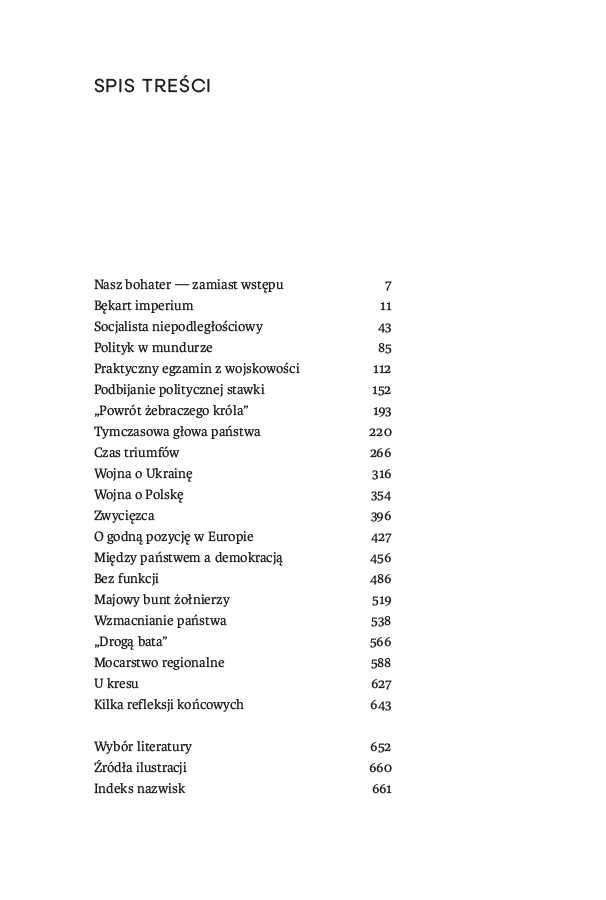 Mariusz Wołos, wybitny znawca dwudziestolecia międzywojennego, profesor Uniwersytetu Komisji Edukacji Narodowej w Krakowie oraz Instytutu Historii PAN w Warszawie, w oparciu o najbardziej aktualną wiedzę umieszcza Piłsudskiego w kontekstach, bez których nie sposób zrozumieć jego sposobu myślenia i działania. Przede wszystkim jednak odmalowuje barwną postać najbardziej rozpoznawalnego z polskich przywódców.