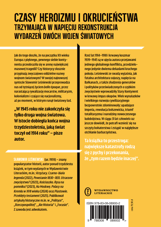 „W 1945 roku nie zakończyła się tylko druga wojna światowa. W istocie dobiegła końca wojna trzydziestoletnia, jaką świat toczył od 1914 roku” – pisze Sławomir Leśniewski. Rzeź lat 1914–1918 i krwawy koszmar lat 1939–1945 są w jego ujęciu przejawami wielkiego globalnego konfliktu pierwszej połowy XX wieku – przedzielonego jedynie dwoma dekadami kruchego pokoju. Te dramatyczne wydarzenia są połączone gęstą siecią współzależności i stanowią związaną ściśle ze sobą całość.