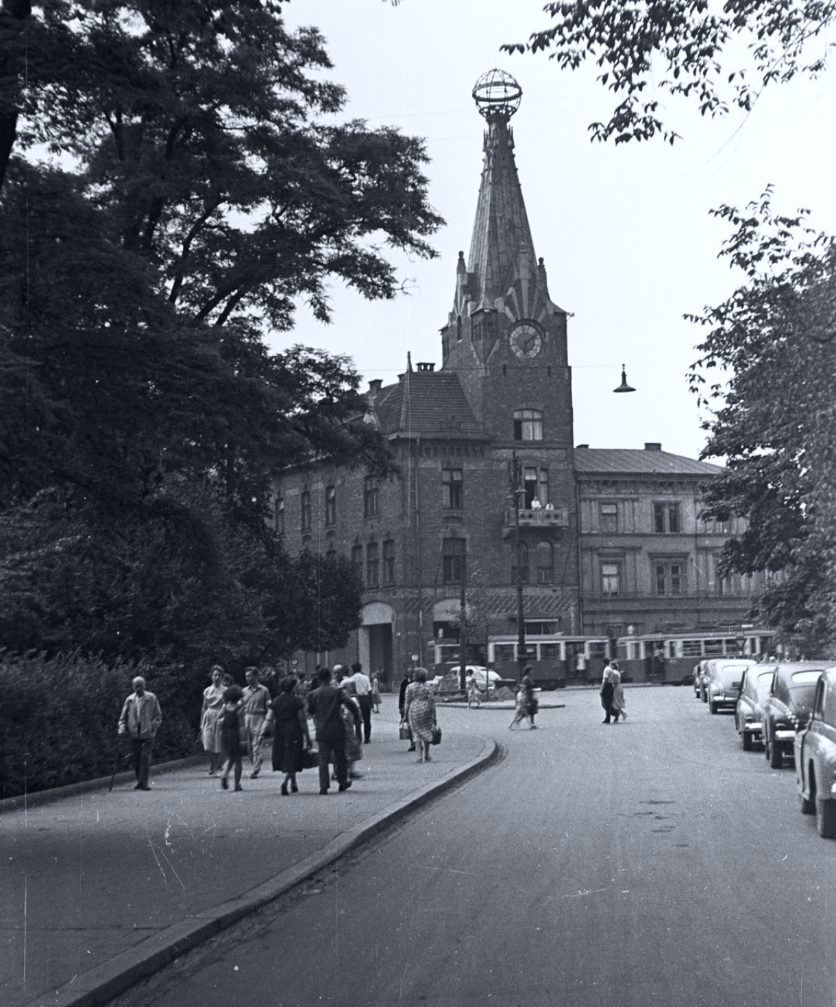 1958 , Widok domu "Pod Globusem" z ulicy Sławkowskiej.