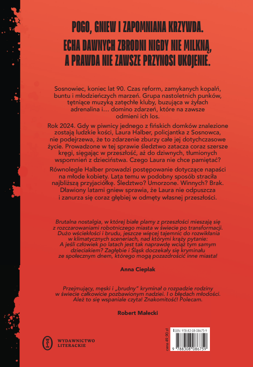 Brutalna nostalgia, w której białe plamy z przeszłości mieszają się z rozczarowaniami robotniczego miasta w świecie po transformacji. Dużo wściekłości i brudu, jeszcze więcej tajemnic do rozwikłania w klimatycznych sceneriach, nad którymi krąży pytanie: „A jeśli człowiek po latach jest tak naprawdę wciąż tym samym dzieciakiem?”. Zagłębie i Śląsk doczekały się kryminału ze społecznym dnem, którego mogą pozazdrościć inne miasta!