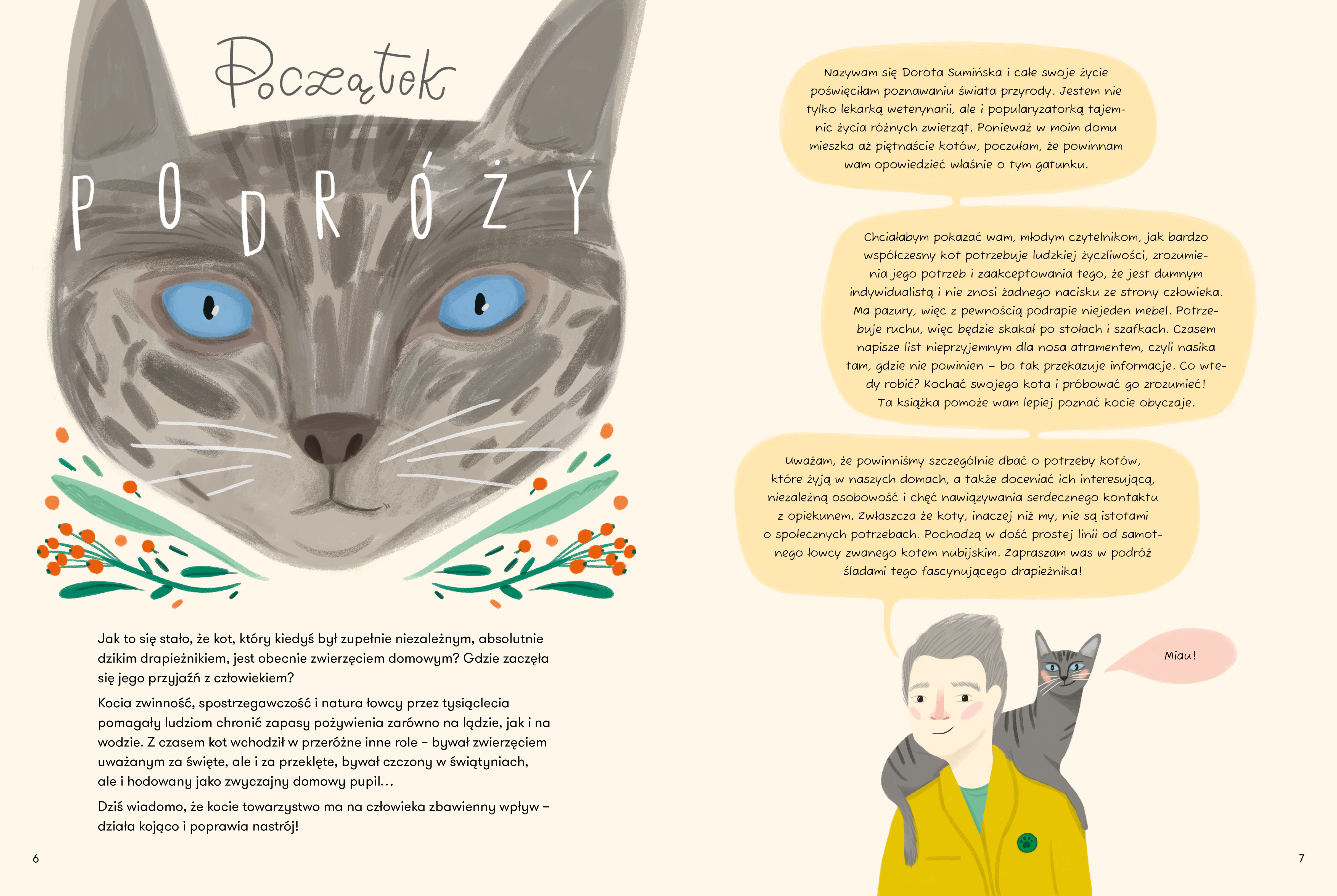 Książka pełna jest przyrodniczych ciekawostek i faktów, które pozwalają lepiej zrozumieć, jak wiele łączy ludzi z tymi tajemniczymi zwierzętami. Sumińska dawne rytuały, niezwykłe zachowania kotów i rolę, jaką odgrywały w różnych kulturach. Wyjaśnia, dlaczego mruczą, czemu nadal polują i co sprawia, że mimo swojej nieprzewidywalnej natury potrafią obdarzyć nas zaufaniem.