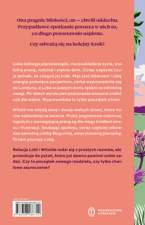 Lidia zbliża się do pięćdziesiątki. Córka mieszka w Londynie, mąż Maciej żyje głównie pracą, a ona coraz częściej czuje się samotna. Kiedy Maciej w ostatniej chwili odwołuje ich wspólne wyjście, na które tak długo czekała, coś w niej pęka. Po latach poświęceń postanawia w końcu zrobić coś dla siebie. Wyjeżdża na wieś i wprowadza się do Bogumiły, emerytowanej pianistki, która szuka towarzystwa. Nie wie jeszcze, że ta decyzja odmieni jej życie.