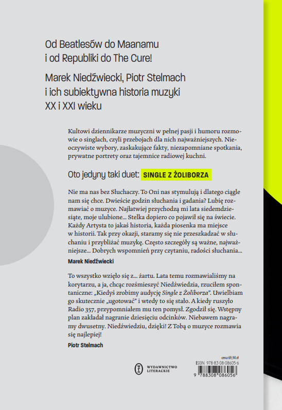 Od Beatlesów do Maanamu i od Republiki do The Cure! Wspólny projekt dwóch kultowych dziennikarzy muzycznych, Marka Niedźwieckiego i Piotra Stelmacha, o singlach, czyli przebojach dla nich najważniejszych. To utrzymane w prywatnym, osobistym tonie rozmowy pełne ciekawostek o piosenkach i ich wykonawcach, słowem – subiektywna historia muzyki XX i XXI wieku.