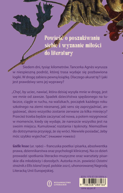 Siedem dni, tysiąc kilometrów. Tancerka Agnès wyrusza w niespieszną podróż, której trasa wydaje się pozbawiona logiki. W drogę zabiera pewną książkę. Dlaczego akurat tę? I jaki jest prawdziwy sens jej wyprawy?