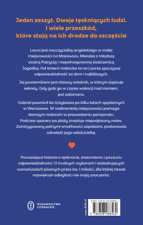 Gabriel po przeprowadzce do Grzybowa prowadzi spokojne, poukładane życie. Wszystko zmienia się pewnego dnia, gdy podczas spaceru z psem znajduje na plaży różowy notatnik. Okazuje się, że należy on do Laury, nauczycielki z Mazowsza, która co roku przyjeżdża tu, by choć na chwilę odpocząć od obowiązków związanych z opieką nad chorą siostrzenicą i młodszą siostrą. Zaintrygowany zapiskami Laury, Gabriel odkrywa, że mają ze sobą więcej wspólnego, niż przypuszczał. Niewinna korespondencja między nimi przeradza się w coś głębszego, a spotkania, mimo dzielącej ich odległości, stają się coraz częstsze. Budują więź, której nie sposób zignorować. Wydaje się, że nic nie stoi na przeszkodzie, aby mogli być razem.