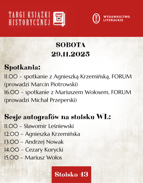 Z czytelnikami spotkają się nasi autorzy i autorki: Mariusz Wołos, Agnieszka Krzemińska, Andrzej Nowak, Sławomir Leśniewski, Cezary Korycki.