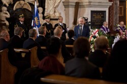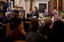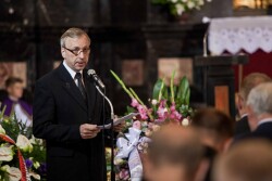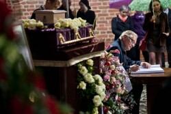 W deszczowy wtorek krakowianie i goście z całego świata towarzyszyli wybitnemu pisarzowi w ostatniej drodze. Od 10.00 rano urna z prochami Sławomira Mrożka była wystawiona w Barbakanie. Tam też można było wpisywać się do księgi kondolencyjnej. Przed 13.00 kondukt pogrzebowy przeszedł spod Barbakanu, przez ul. Floriańską, Rynek Główny i Grodzką do kościoła św. św. Piotra i Pawła, gdzie metropolita krakowski kard. Stanisław Dziwisz odprawił nabożeństwo żałobne.